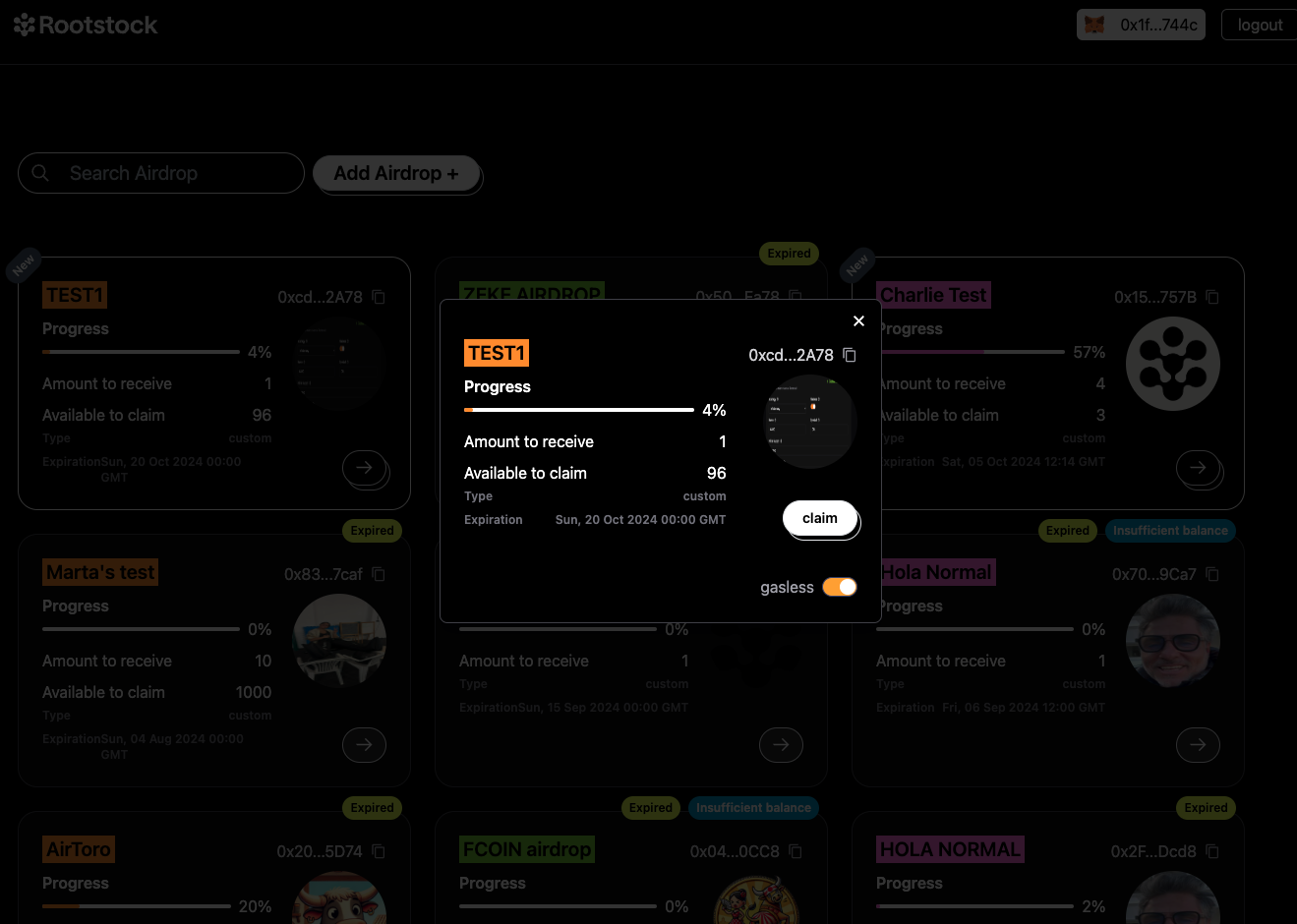 - The first airdrop on the list is called “Test”. Here's a breakdown of what you’ll see on the airdrop card: