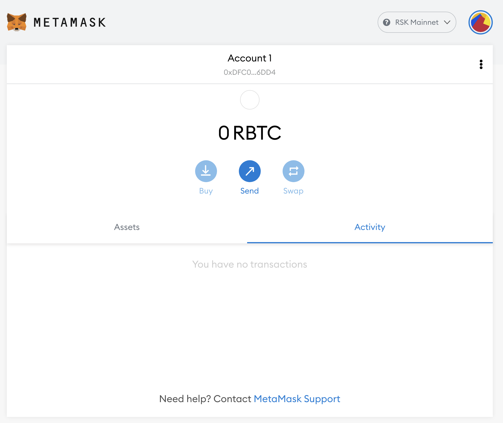 At this point, you should have everything set up: You have a wallet installed, that wallet is connected to the RSK Mainnet, and you have addresses inside that wallet.
